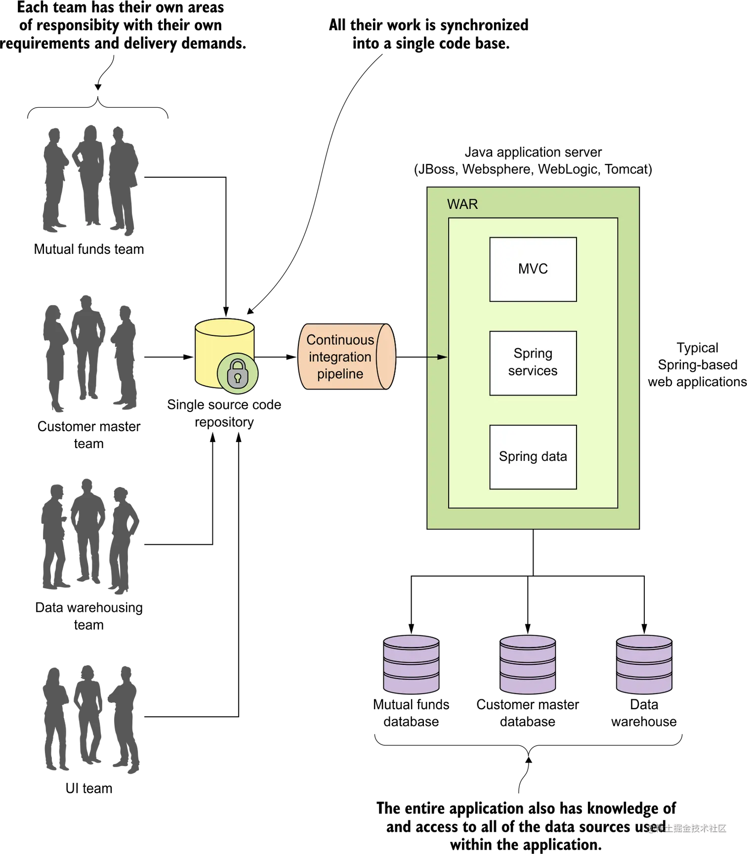 - 各个模块之间紧耦合