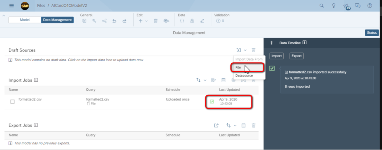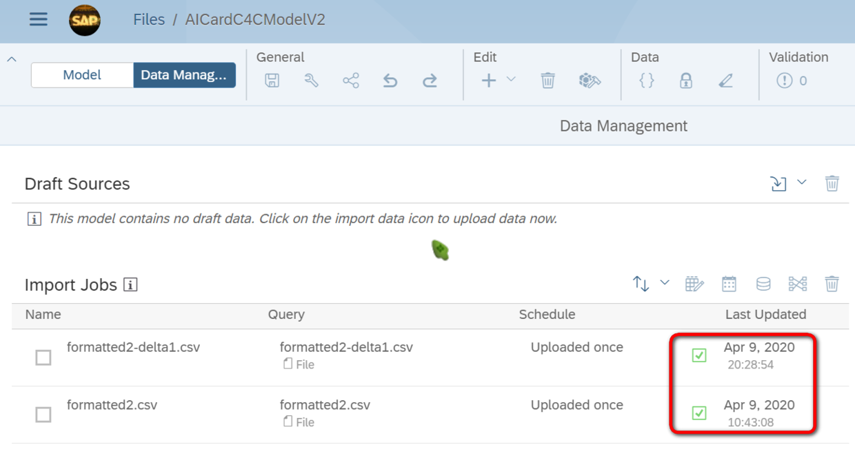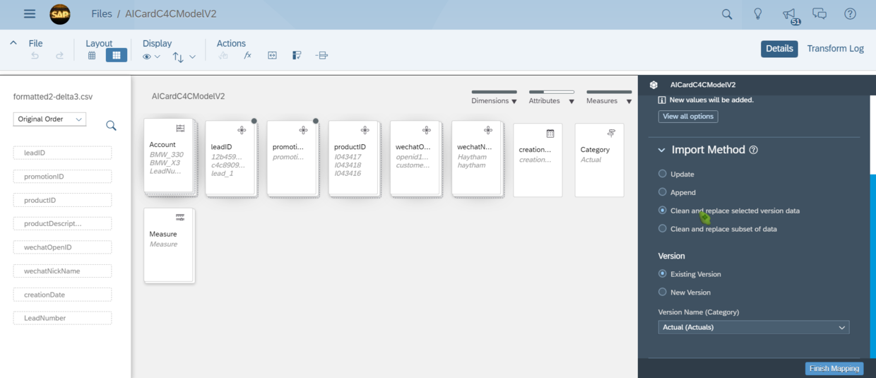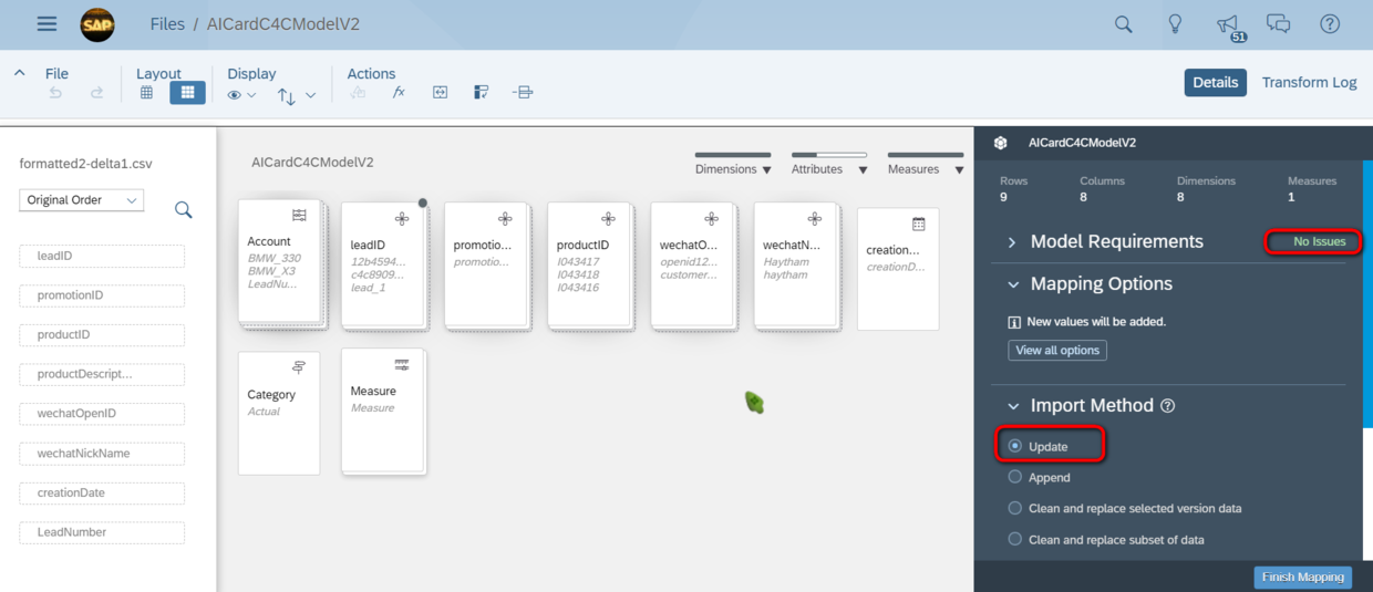 Import Method选择Update,如果选成Append,仅仅会简单的将第二次上传的csv文件里所有的内容添加到model的尾部。