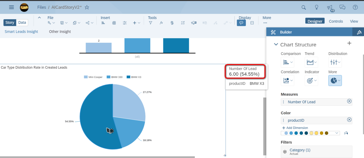 因此我用了一个workaround:在未能自动刷新的图标里,手动创建一个Calculation measure,类型为aggregation,operation为count dimension, aggregation dimensions选择为leadID: