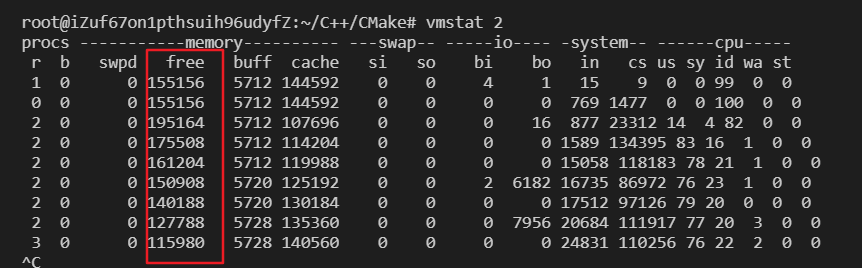 通过vmstat命令,我们可以知道free字段在逐渐减少,所以初步可以知道程序;