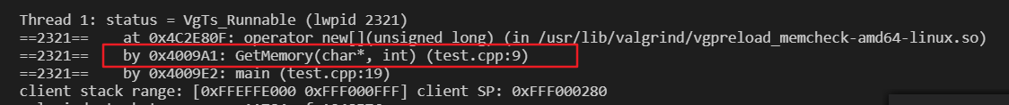 0x00000000011521a0 0xc at /root/C++/CMake/C++/Memory/test.cpp:21