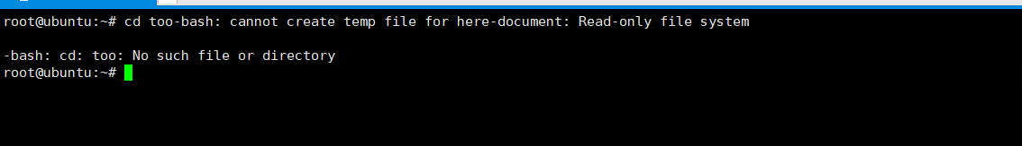并且系统命令使用也不正常,cd 按Tab补全也会报错:-bash: cannot create temp file for here-document: Read-only file system