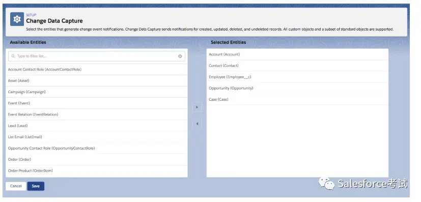 首先需要在Setup里面选择所需要使用Change Data Capture的对象。