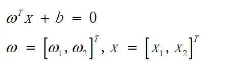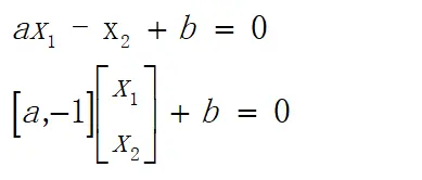 所以首先需要推导“超平面”的方程,二维空间内“超平面”的公式也就是直线方程,如下:
