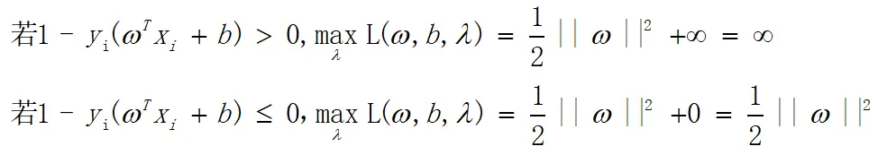 有的伙伴这里可能会不理解,为什么是拉格朗日函数最大值的最小化,下图介绍了原因。