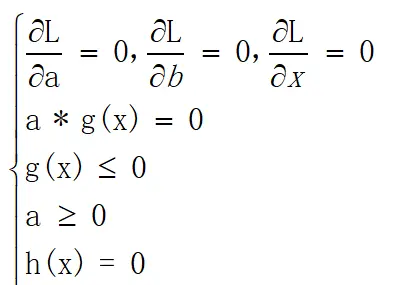 如果想利用KKT条件处理此优化问题,需要利用拉格朗日乘子法将不等式约束、等式约束和目标函数合并写成一个式子,如下: