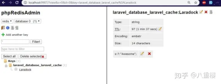 然后访问你的 laravel 首页,就可以去 PhpRedisAdmin 看看结果啦。