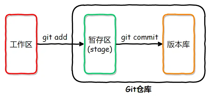 通过git status查看git状态时,红色的文件表示在工作区;绿色的文件表示在暂存区: