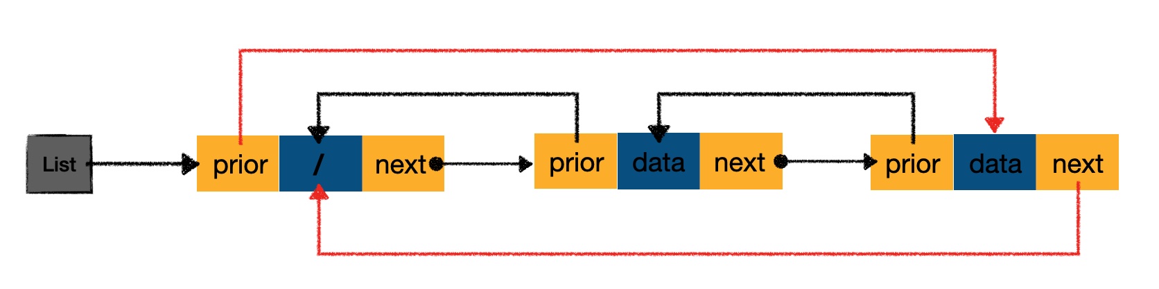 跟单向循环链表一样,双向循环链表其实节点结构不变,只是首尾相连而已,其大致像这样: