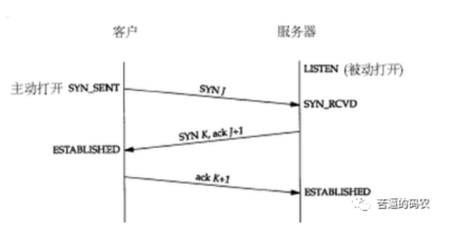 - 第三次握手:客户端收到 SYN 报文之后,会发送一个 ACK = seq(s)+1报文,客户端处于established状态