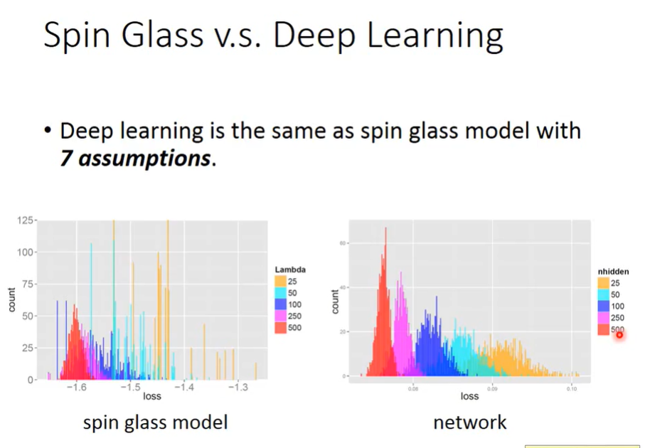 如下图右,不同neuron数量的network它的loss分布如图所见,可以发现小network,loss可以很低,也可以很高,loss的分布非常的广,随着network越来越大,network的loss基本上越来越低,loss分布也越来越集中在小loss上。这说明local minima的loss集中在某一个value附近