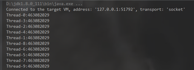 System.out.println(Thread.currentThread().getName()+":"+Singleton.getSingleton().hashCode());