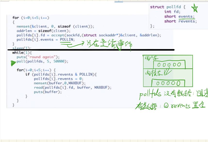 - 使用pollfds数组解决了大小限制问题