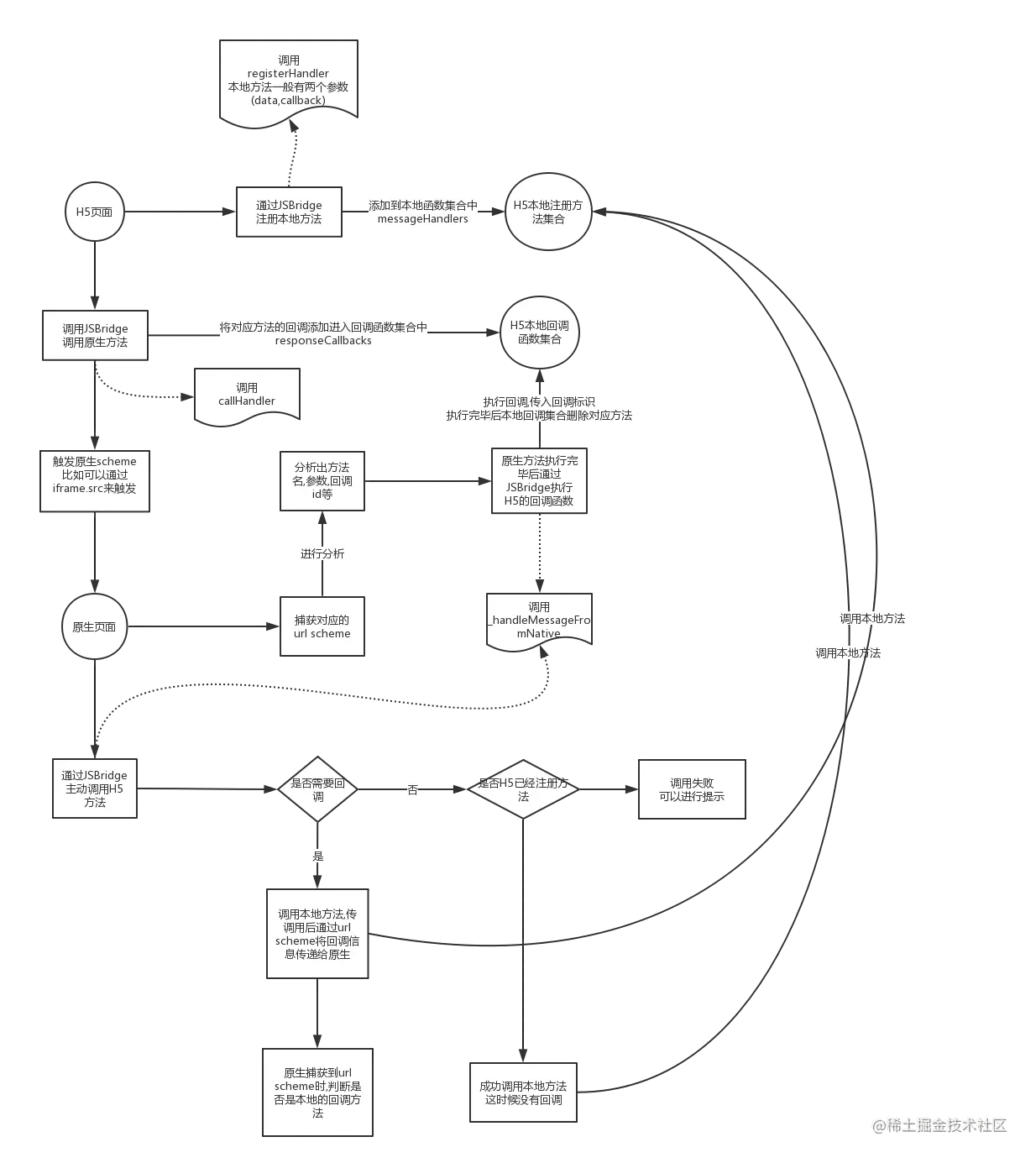 callHandler( String,JSON,Function )H5调用 调用原生开放的api,调用后实际上还是本地通过url scheme触发。调用时会将回调id存放到本地变量responseCallbacks中