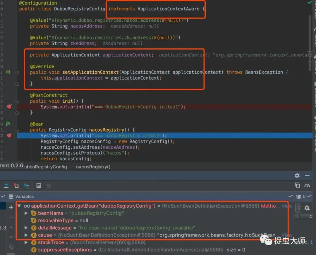 === zkRegistry create发现在nacosRegistry创建的时候,居然找不到DubboRegistryConfig的bean定义,难道是@Import使用姿势不对?于是把@Import改成包扫描,再调试发现可以找DubboRegistryConfig