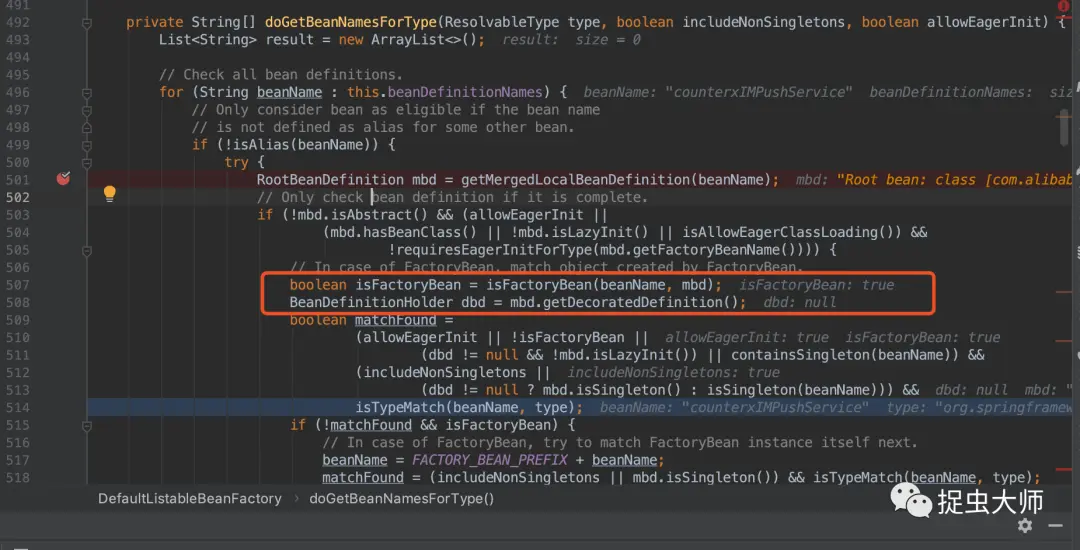 这个类型的bean,调用DefaultListableBeanFactory.doGetBeanNamesForType这个方法就会初始化bean了,这是为什么?