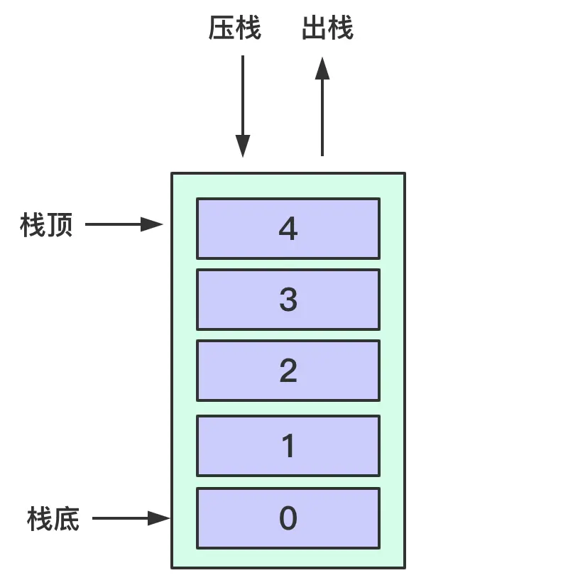 栈顶存储取数据,另一端栈底是封闭的 - 在栈中,无论是存数据还是取数据,都必须遵循
