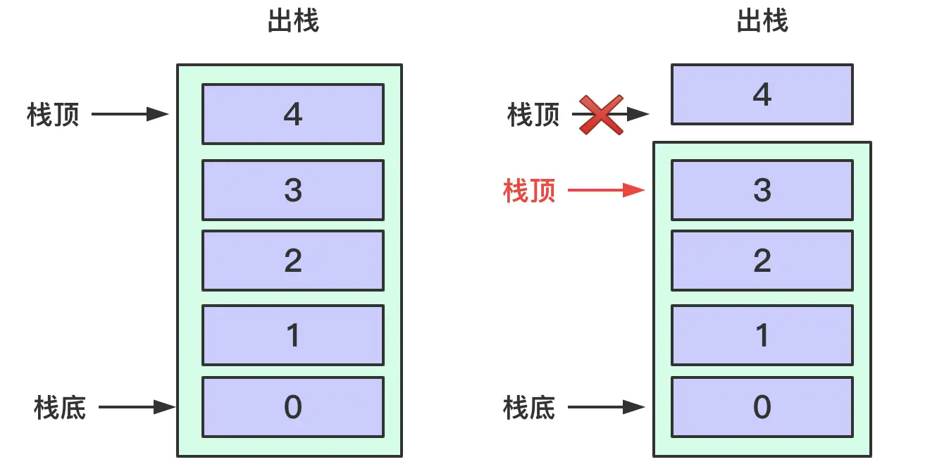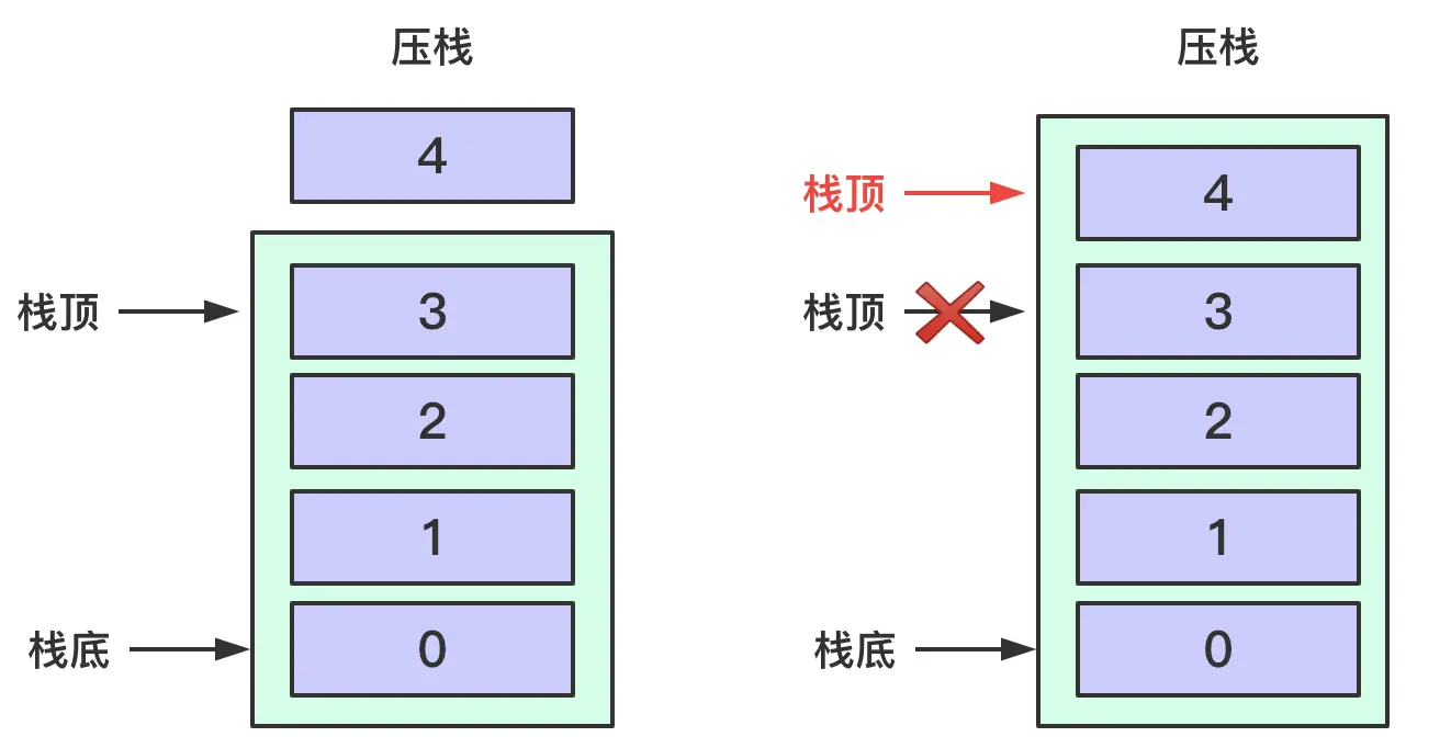 基于栈结构的特点,在实际应用中,通常只会对栈执行以下两种操作:
