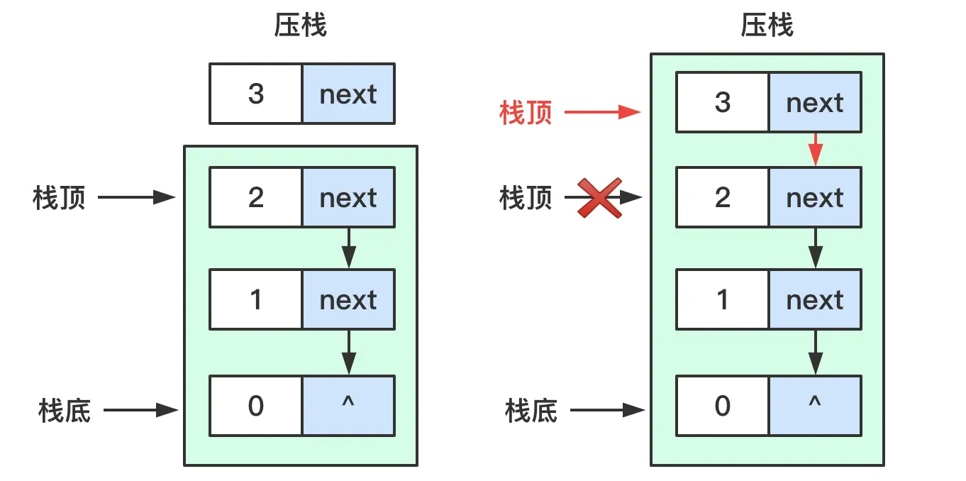 - 链式栈:采用链式存储结构实现栈结构