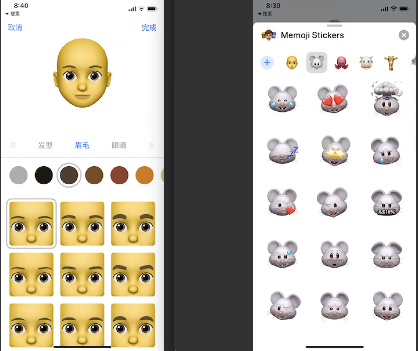 在iOS13系统中,对拟我表情进行了升级,提供了更多的灵活性,同时新增了几款动画表情角色。