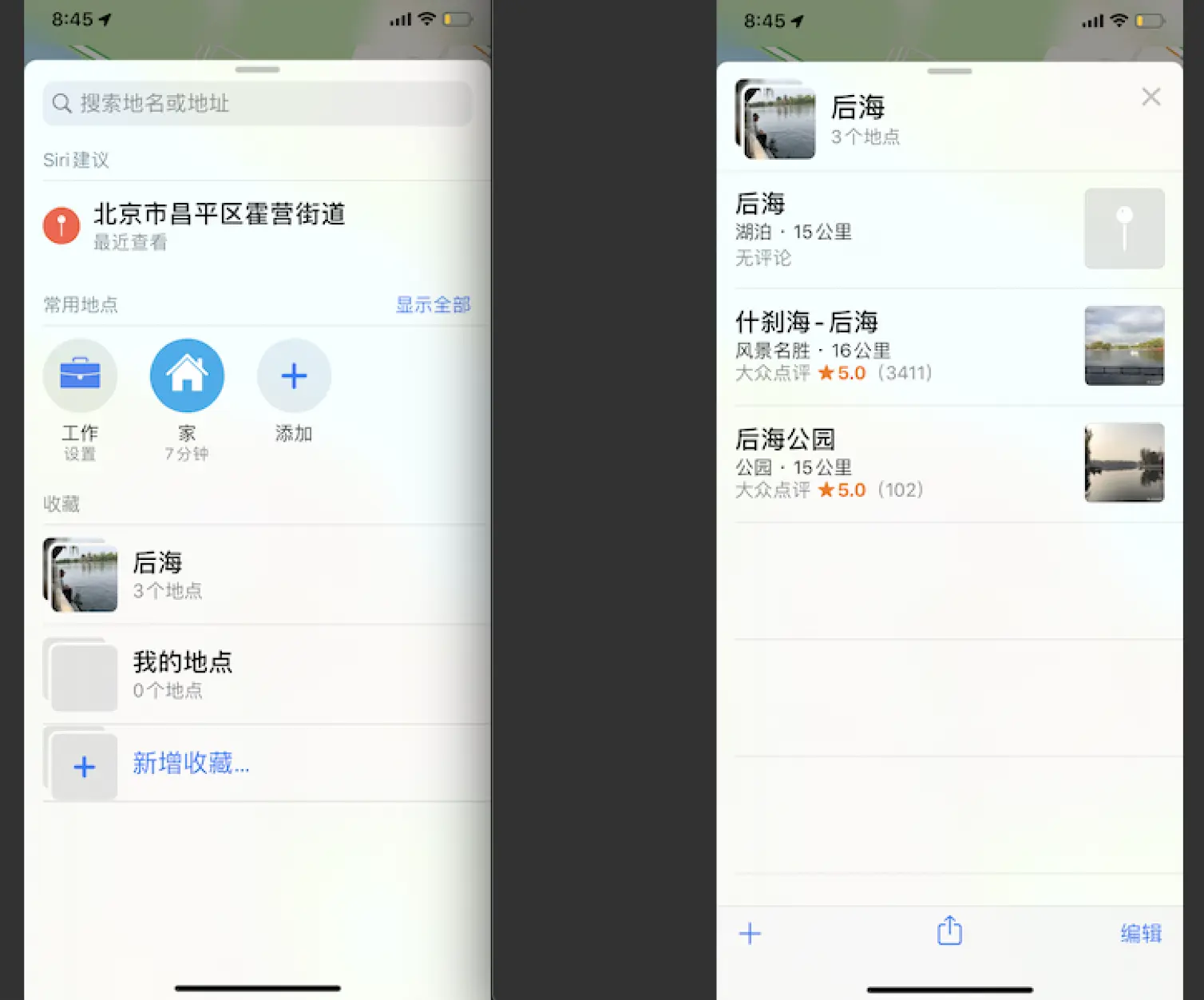 - 收藏:为你常用的和将会用到的地点创建收藏,然后分享给亲朋好友。