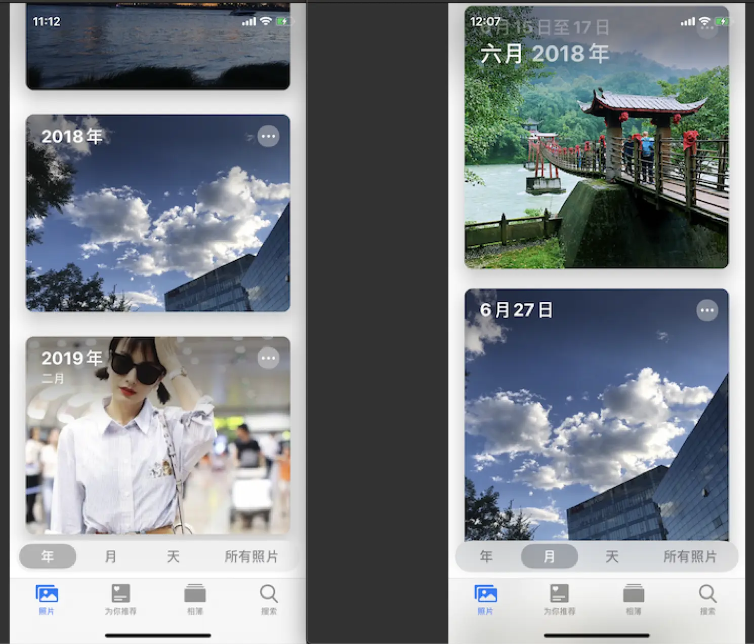 全新的“照片”标签页: 可以让你按不同整理层级来浏览照片图库,帮你轻松查找、重温和分享照片和视频。