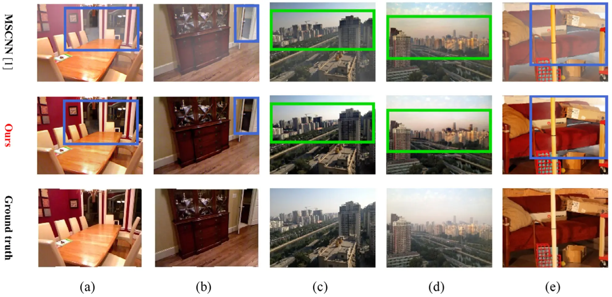 过去的一些方法中希望通过估计传输图得到无雾结果,但是传输图的Gth一般也不够准确,因此得到训练好的网络也不一定准确,容易导致测试结果产生伪影光晕或颜色失真。