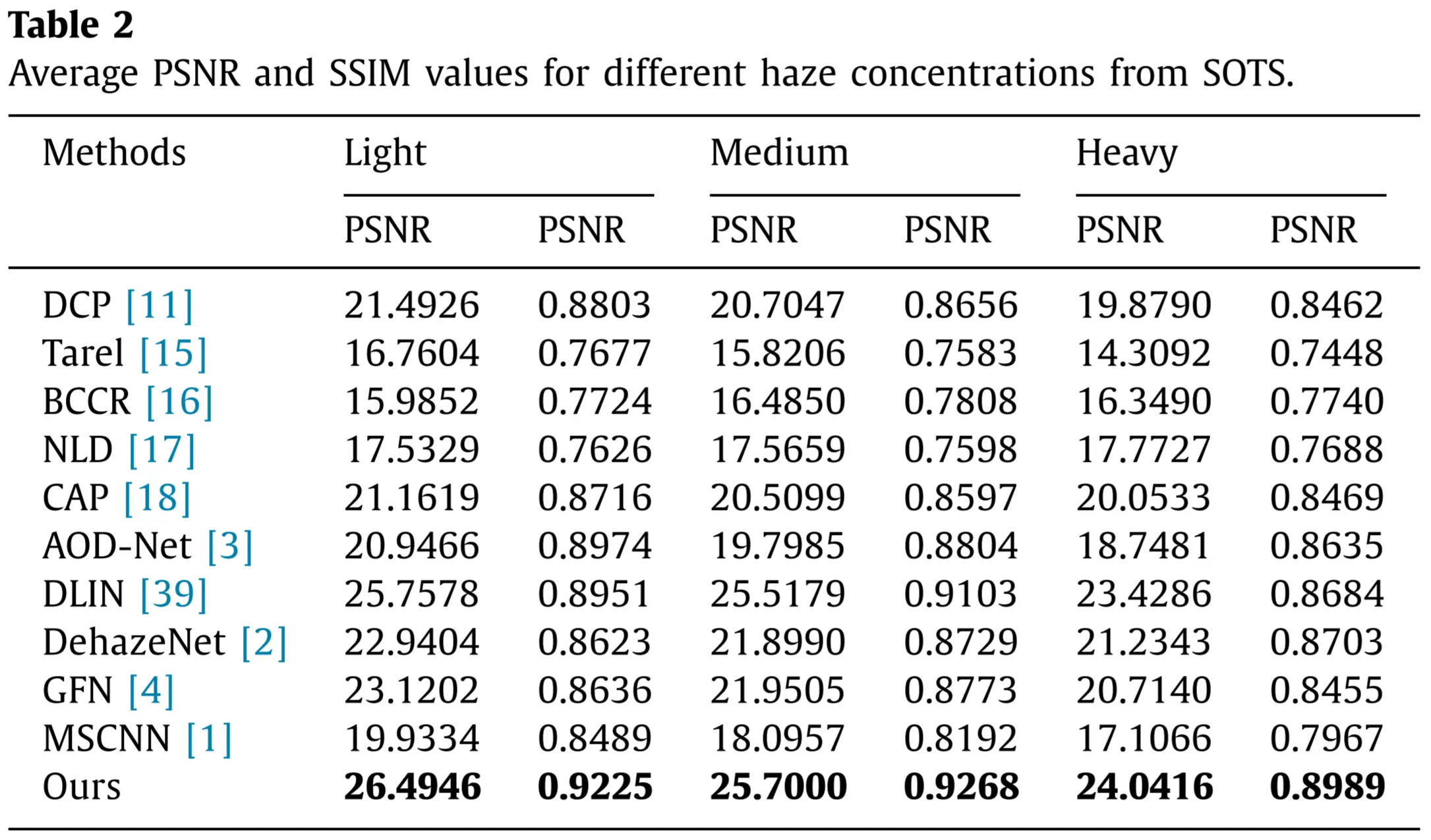 但是,当亮度或对比度非常低时,文章的方法也无法生成具有吸引人的可见度的无雾结果。