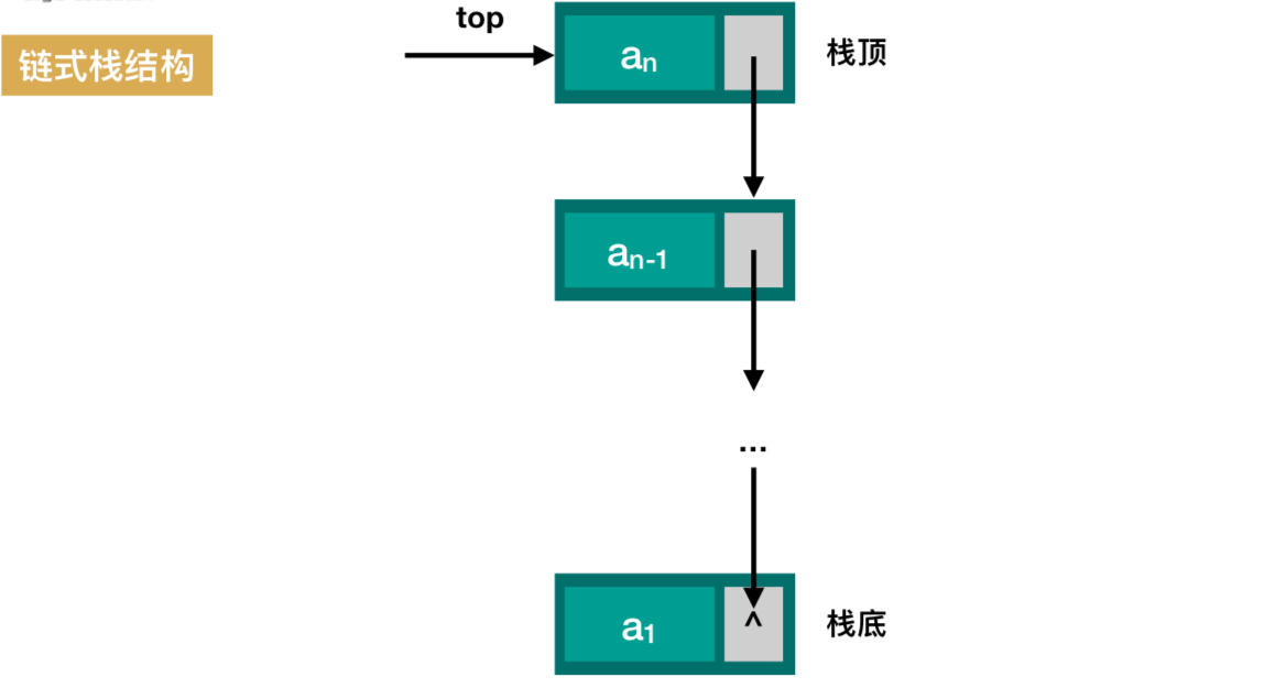 栈的链式存储结构,简称为链栈。对于链栈来说,基本不会存在,像顺序栈那样的,栈空间被占满的情况。