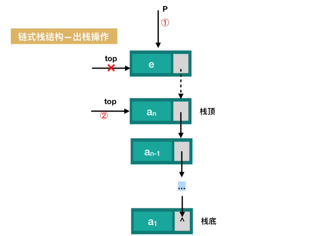 S->top = S->top->next; // 调整栈顶元素为next下一个
