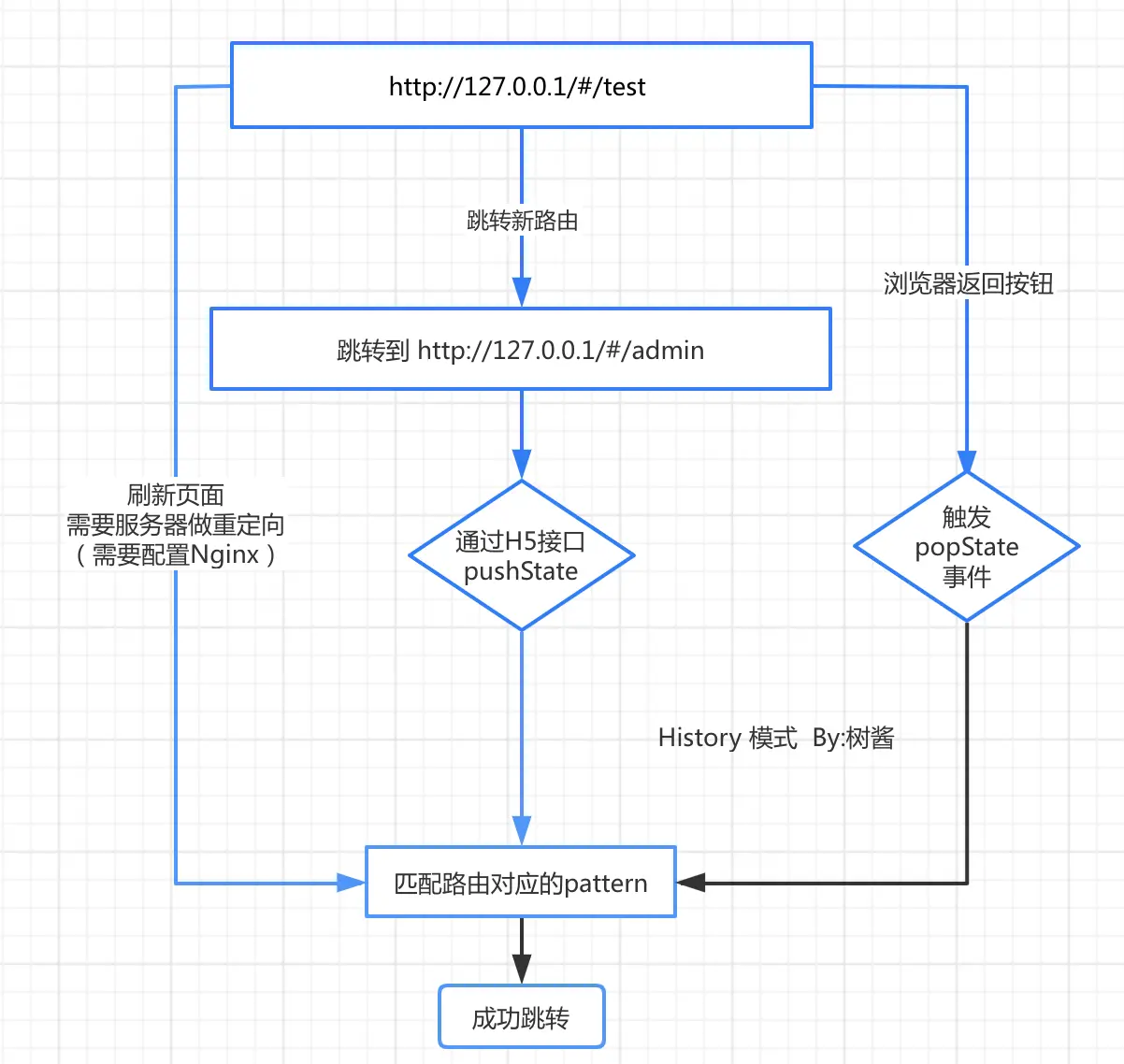导致路由的变化无非是三种情况:刷新页面、浏览器返回操作、新链接跳转,下面是具体流程图👇