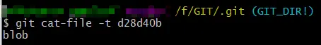 - 使用git cat-file -t <键值>看下文件类型(键值使用缩写)、发现是上面提到过的blob存储对象