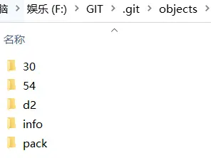 现在 .git/objects 长这样(info and pack 保存执行 git gc命令后修剪过的 git 数据文件、这里不展开讨论、有时间再说)