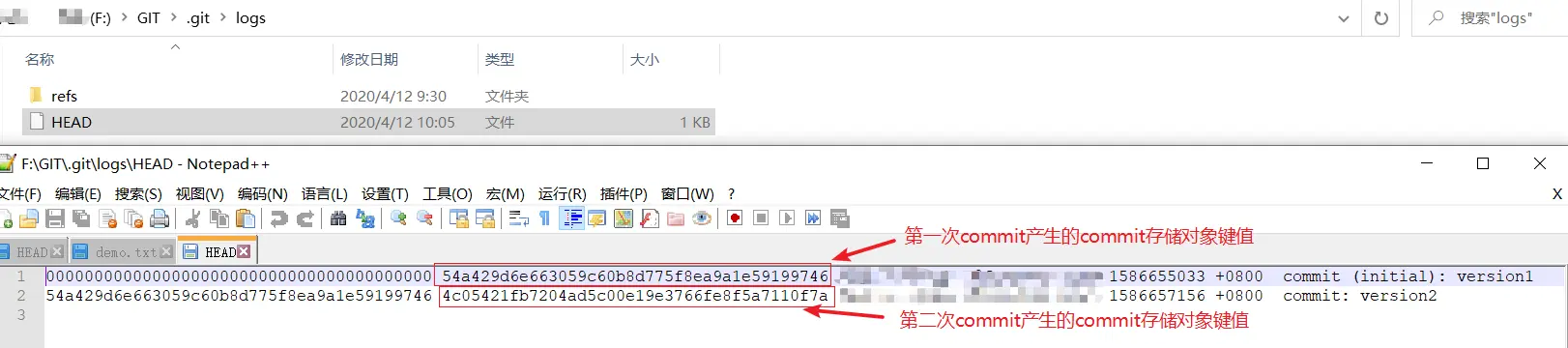 .git目录下有一个检索文件(.git\logs\HEAD)当前分支对应的索引,里面存放的内容如下