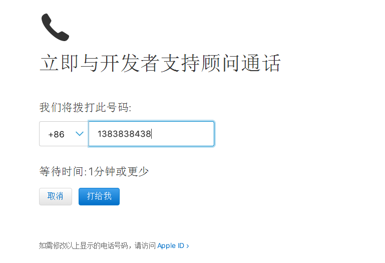 如今联系苹果客服,不是直接拨打某一个电话号,而是需要到苹果开发者中心请求电话,苹果那边再打过来。