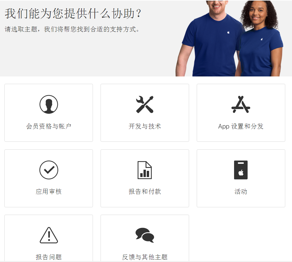 1、先登录苹果开发者中心联系页面:developer.apple.com/contact/cn
