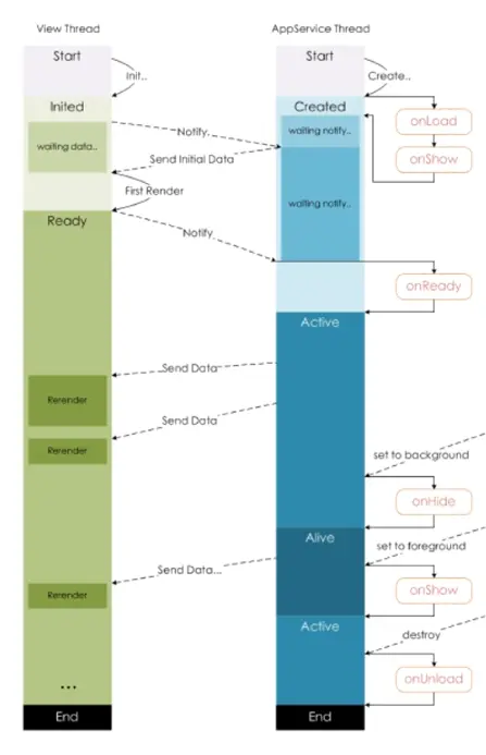 onLoad,onShowcallback,然后状态变成Created - 渲染线程通知逻辑线程渲染完毕