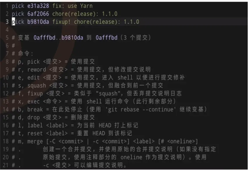 - 合并提交 git rebase -i