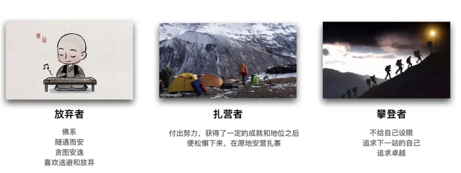 贵重:每个攀登者⼼中都住着一个扎营者,作为TL也要相信 ,每个⼈⽣来就有促使⾃⼰攀登上升的核心驱动力。