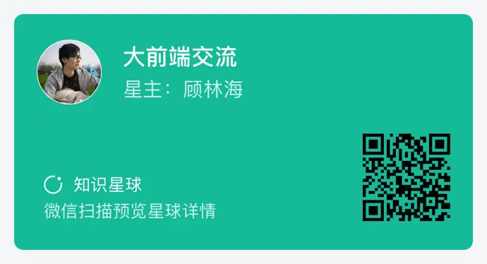 最后欢迎大家加入知识星球“大前端交流”,我在星球内开展了读书打卡、健身打卡活动,加入我们一起见证属于我们的成长之旅。