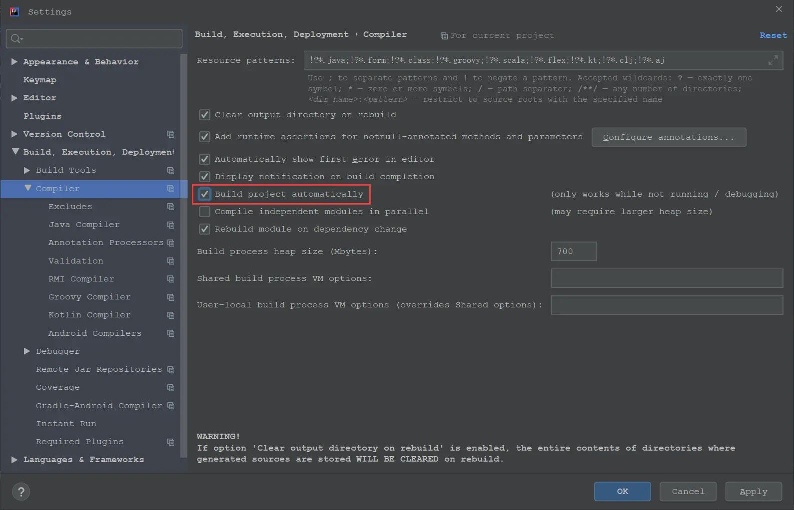 Build project automatically选项