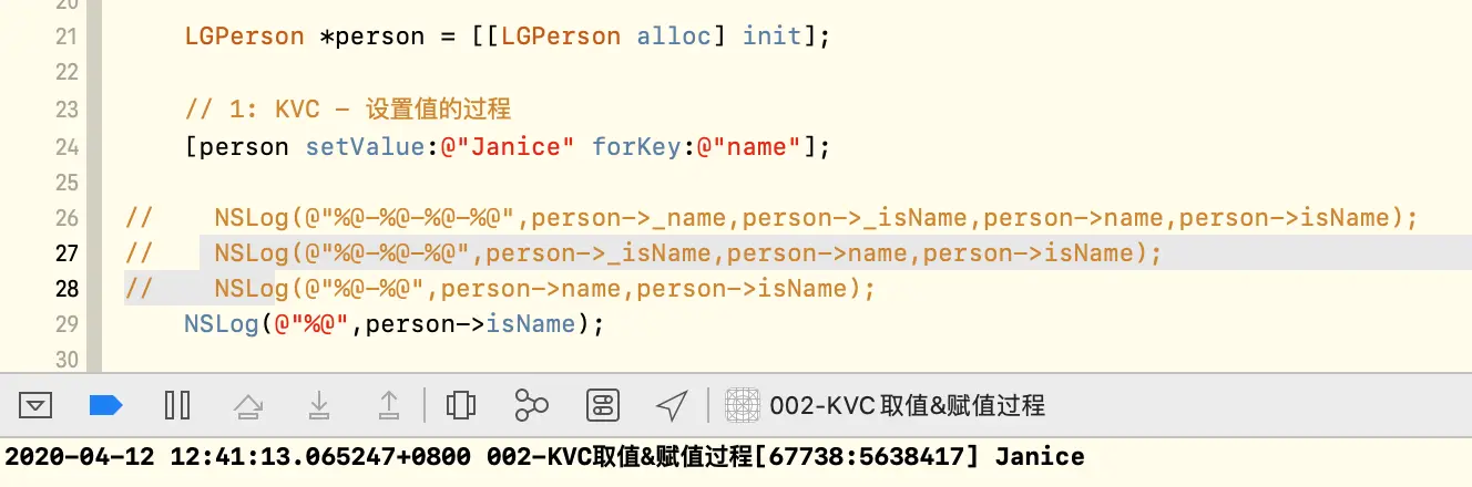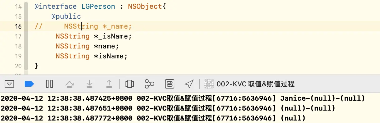 // NSLog(@"%@-%@-%@-%@",person->_name,person->_isName,person->name,person->isName);