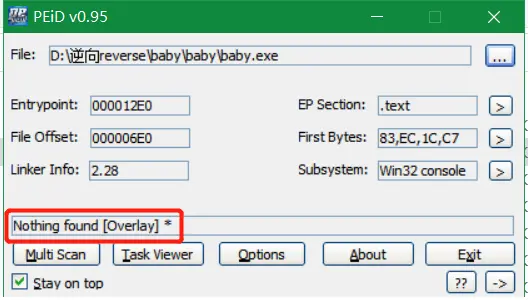 1.思路:解压zip文件夹后发现里面有个baby.exe。但是可执行文件打不开?