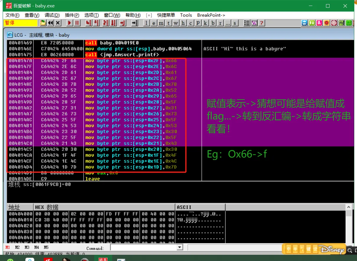 - 发现一段赋值操作的代码,载入IDA,在主函数中找到这段代码: