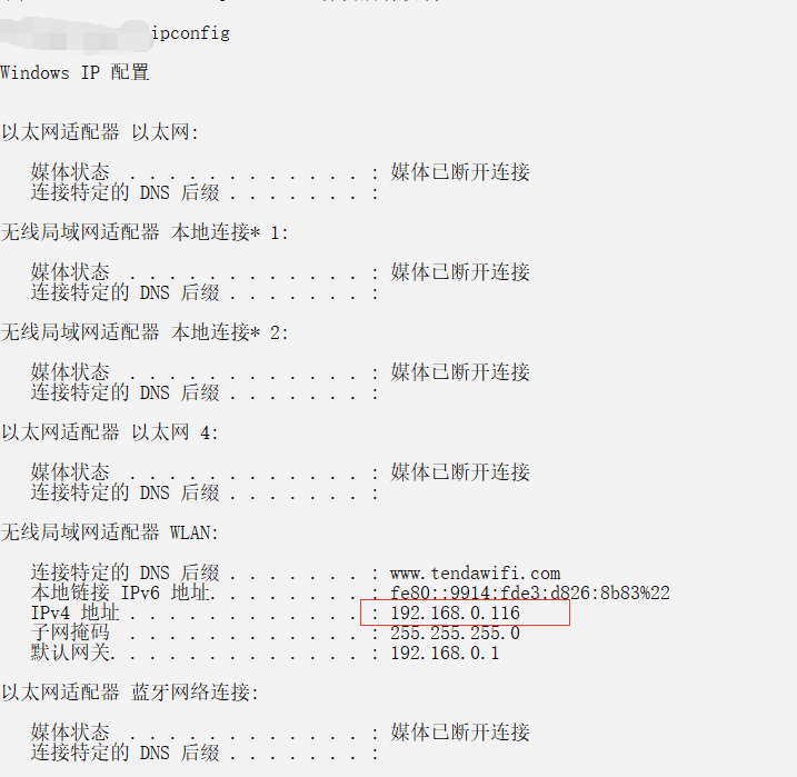 2.ipconfig 查看电脑的IP 地址