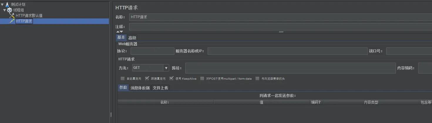 右键点击“线程组” -> “添加” -> “配置元件” -> “HTTP请求”