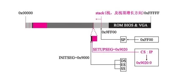 SETUPSEG = 0x9020 ! setup程序会以 0x9020 为起始地点加载