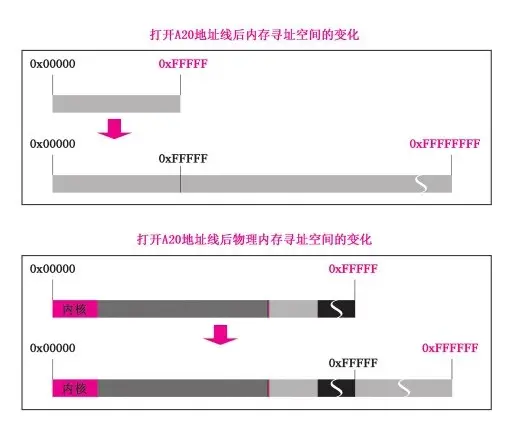 20位寻址转变为32位寻址(即由实模式转变为保护模式)