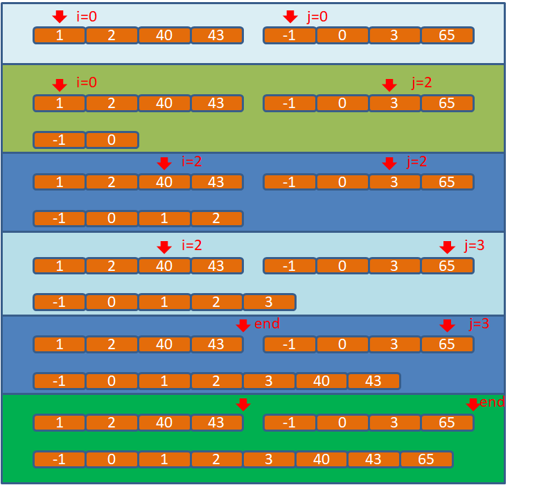 最后得出结果, 这就是归并排序。
