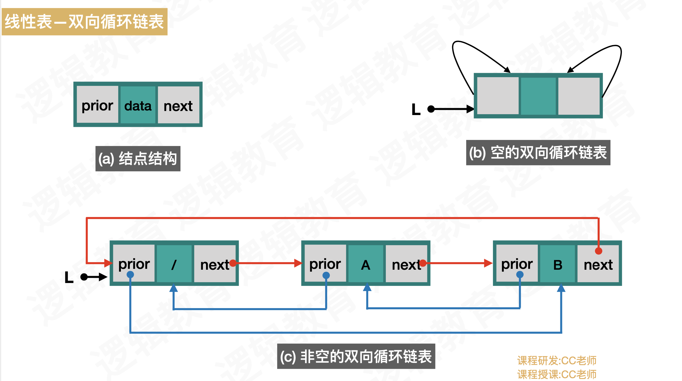 - 空表时,头结点的前驱指针域指向自己,后继指针域指向自己